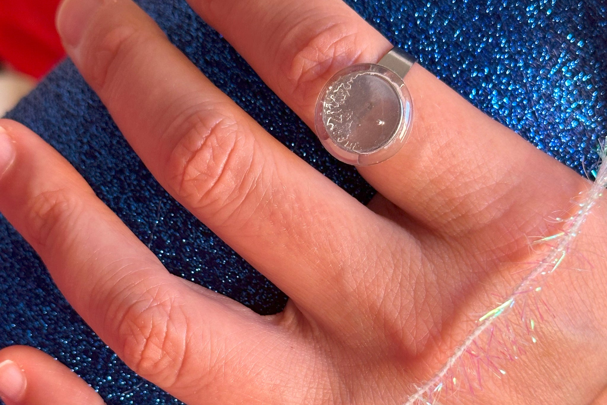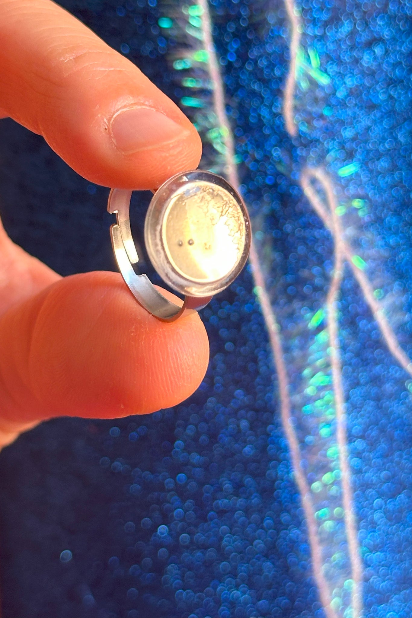 Anello fatto a mano creato da una goccia di resina trasparente. Semplice ed elegante.