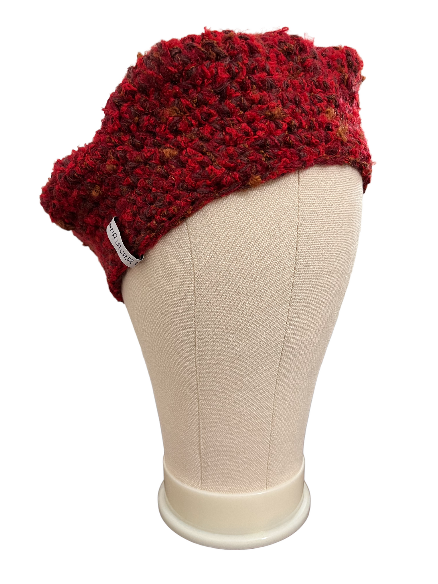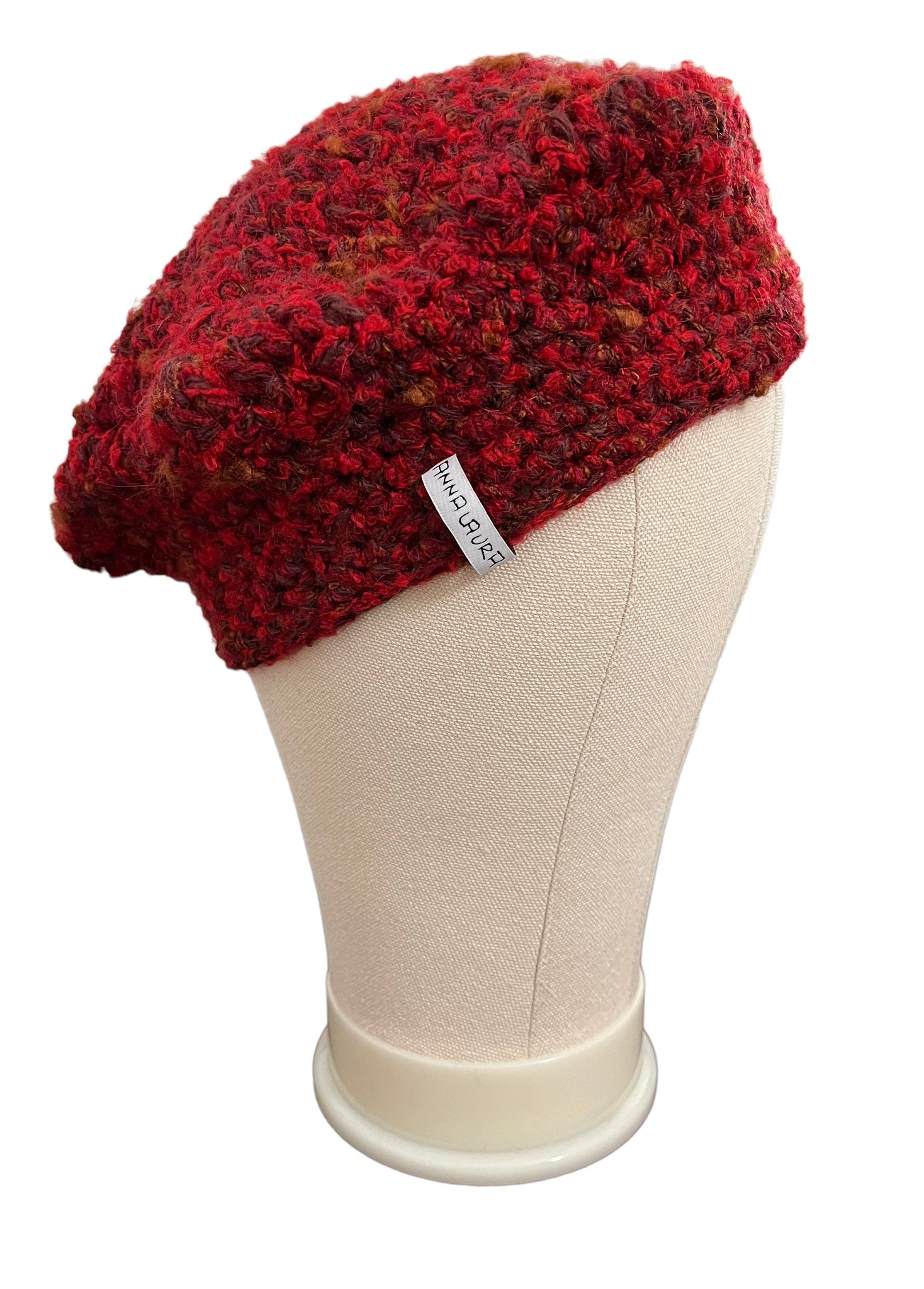 Cappello a basco in lana melange di colore rosso, mattone e marrone. Fatto a mano a uncinetto.