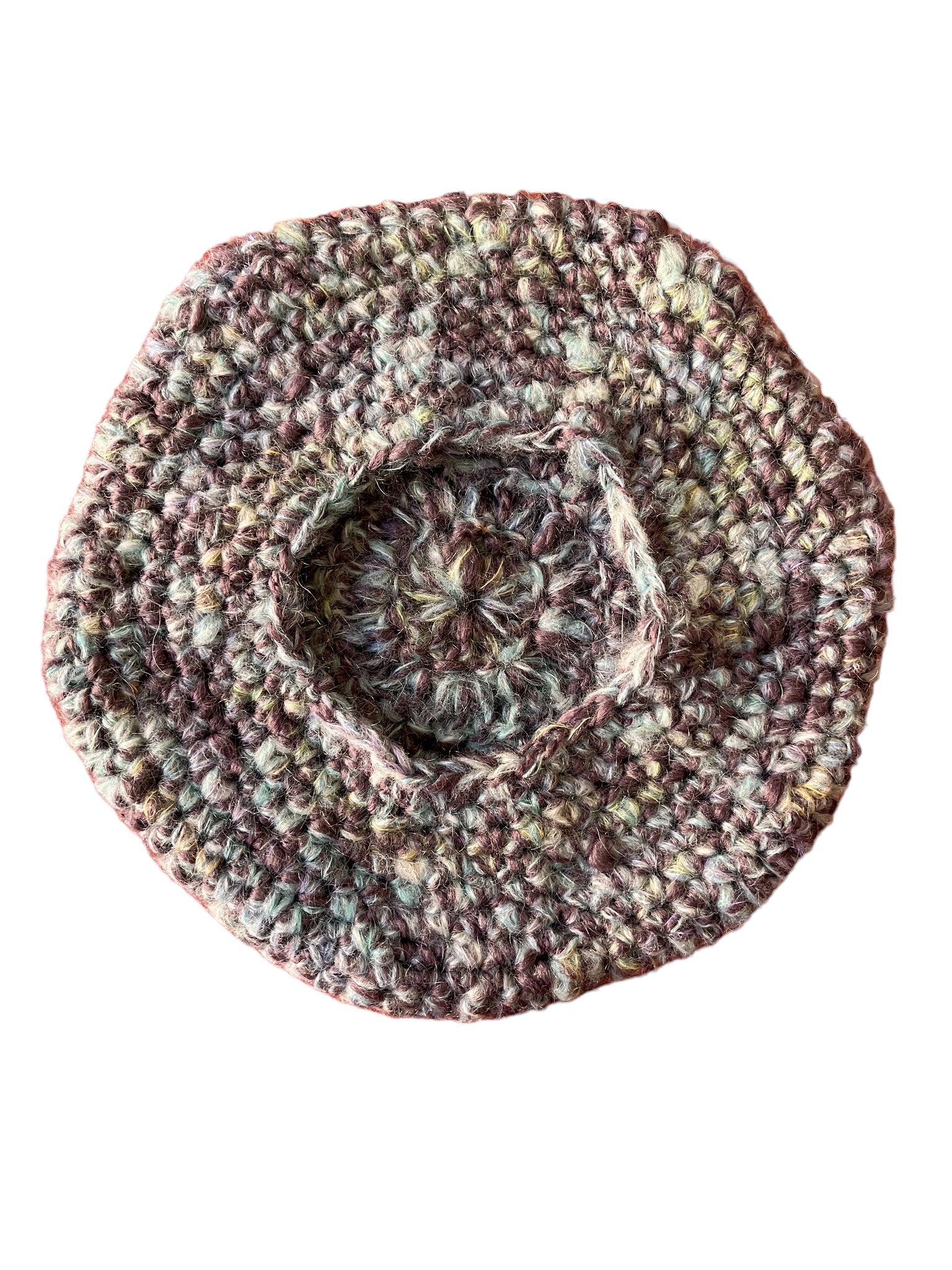 Cappello a basco in lana fatto a mano a uncinetto. Taglia unica.