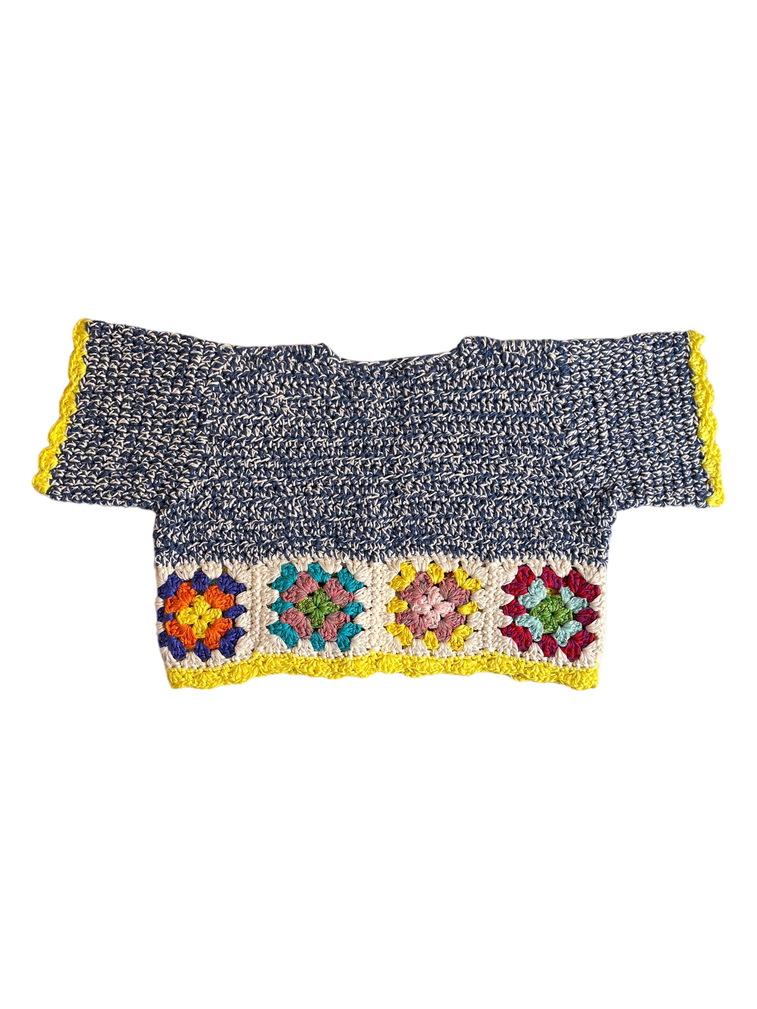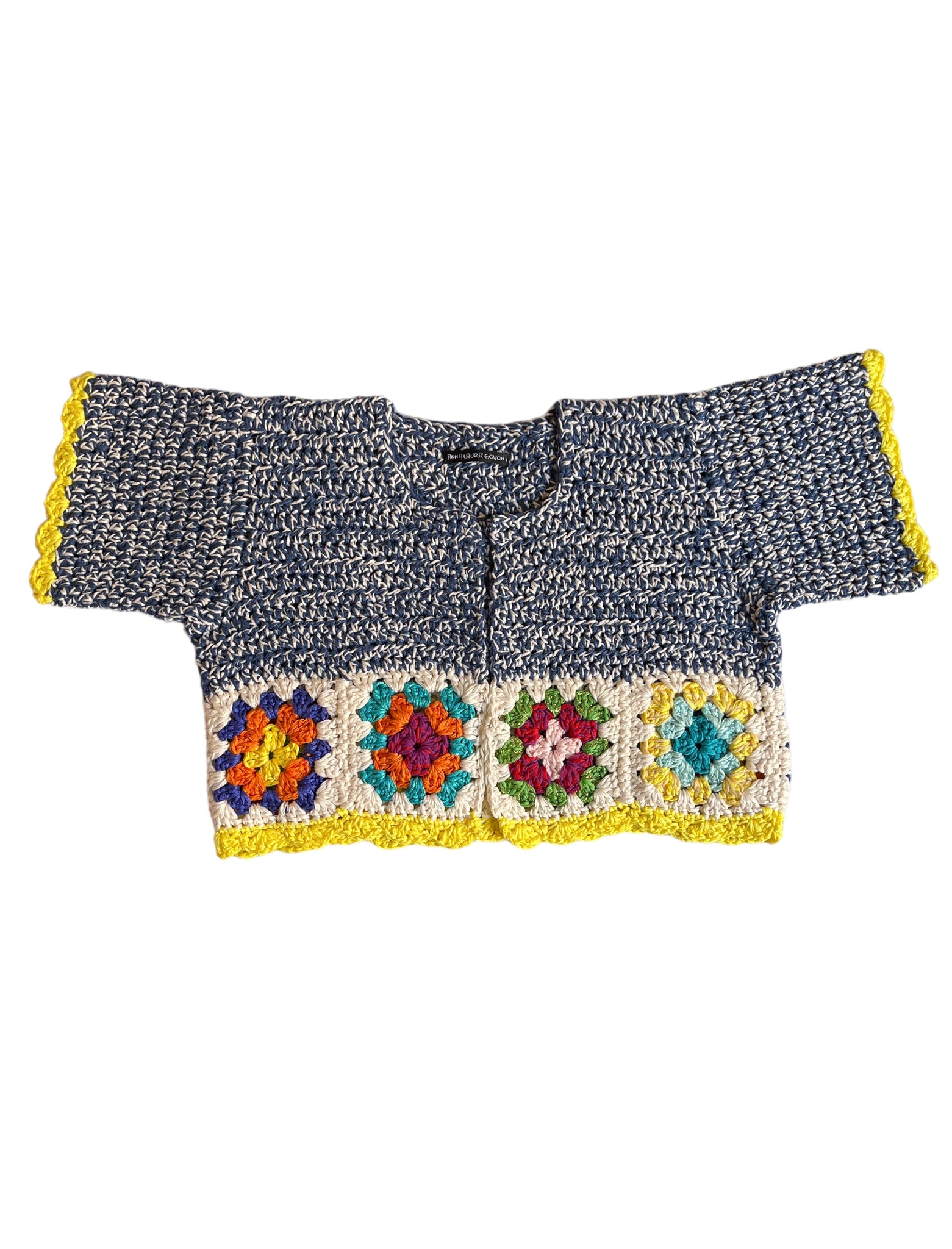 Bolerino fatto a mano a uncinetto in cotone colorato.