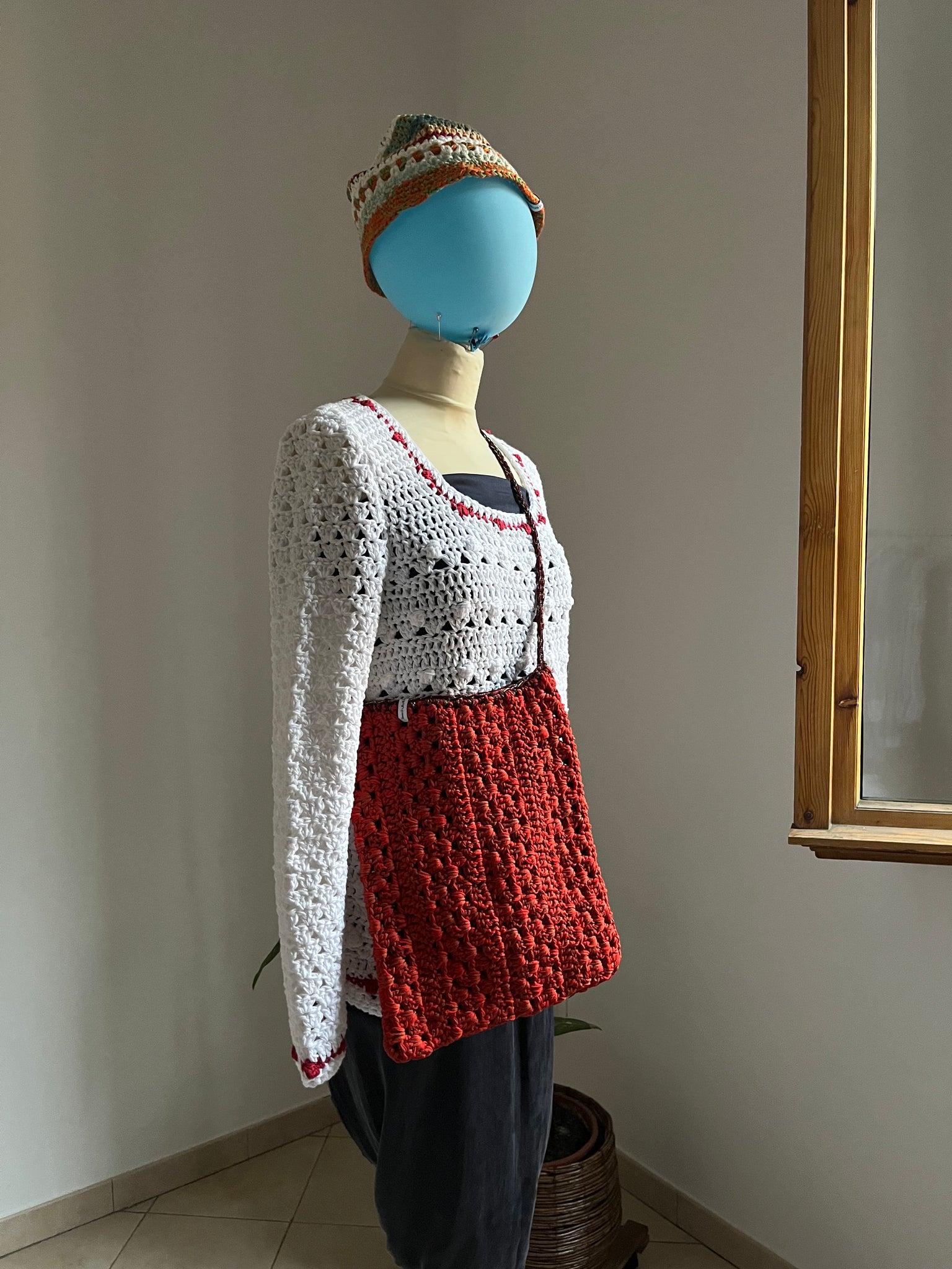Dimensioni: sacca 34 cm x 27 cm x 3 cm. Tracolla di lunghezza totale 84 cm.