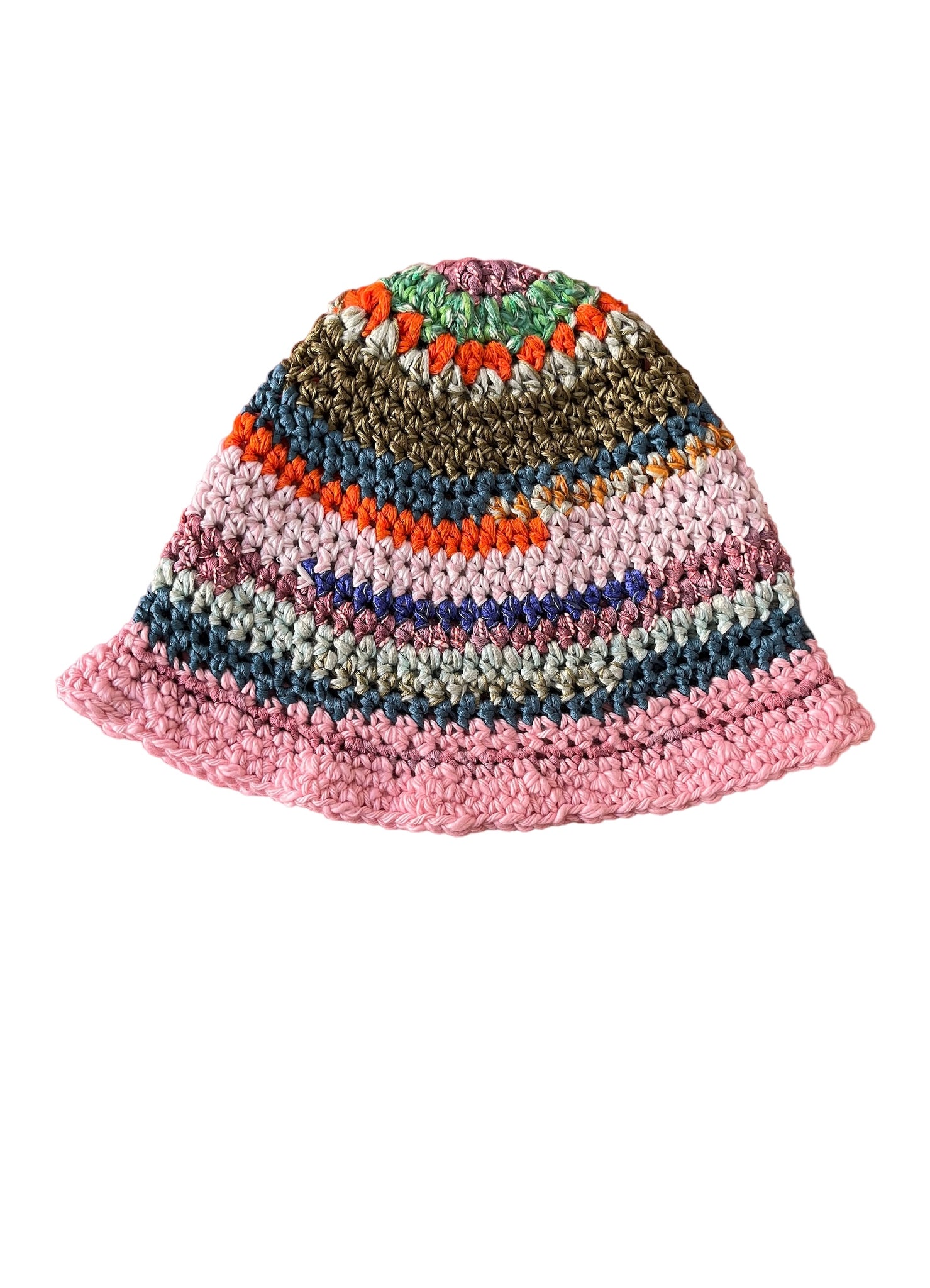 Berretto multicolor in cotone fatto a mano a uncinetto