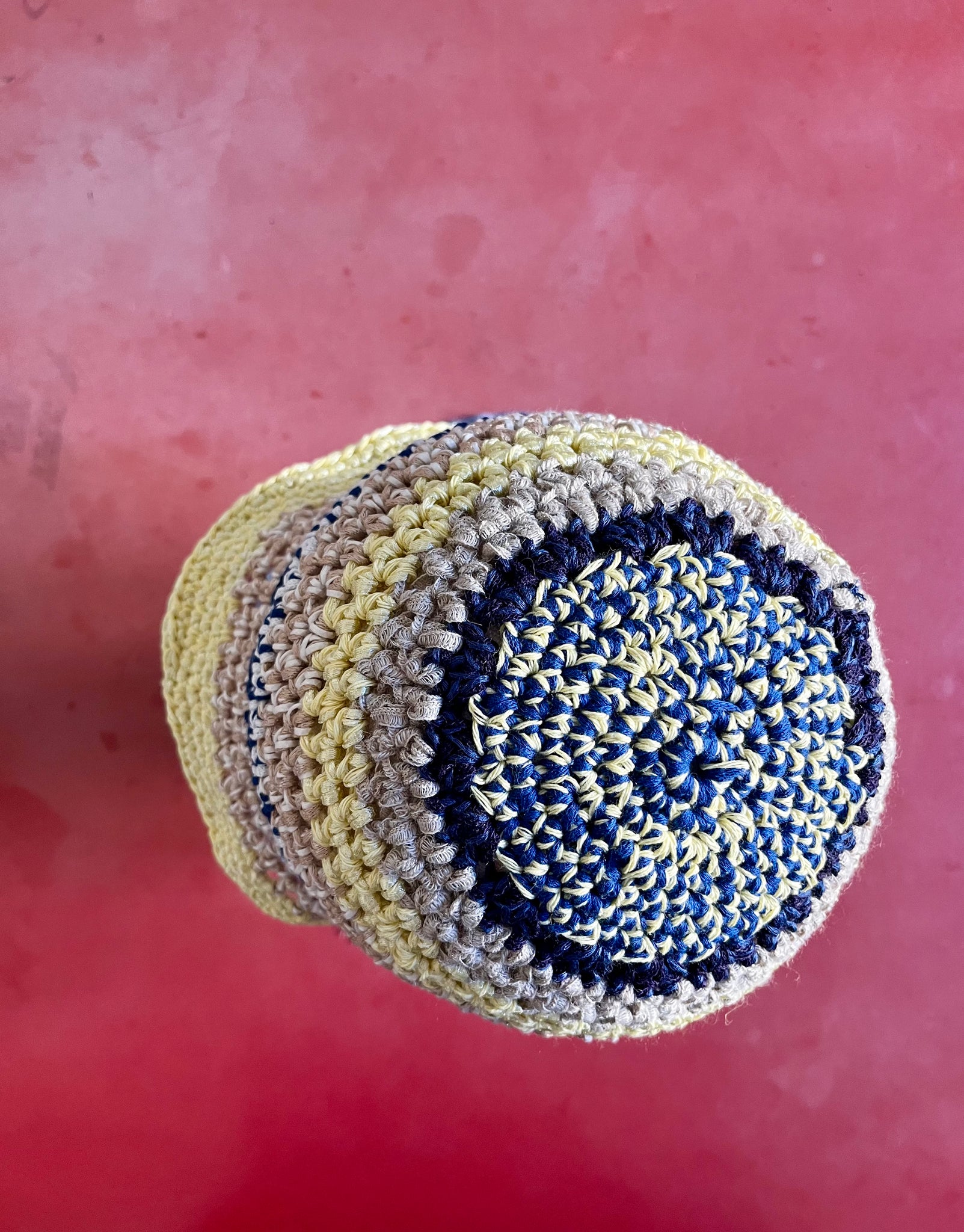 Berretto multicolor in cotone fatto a mano a uncinetto.