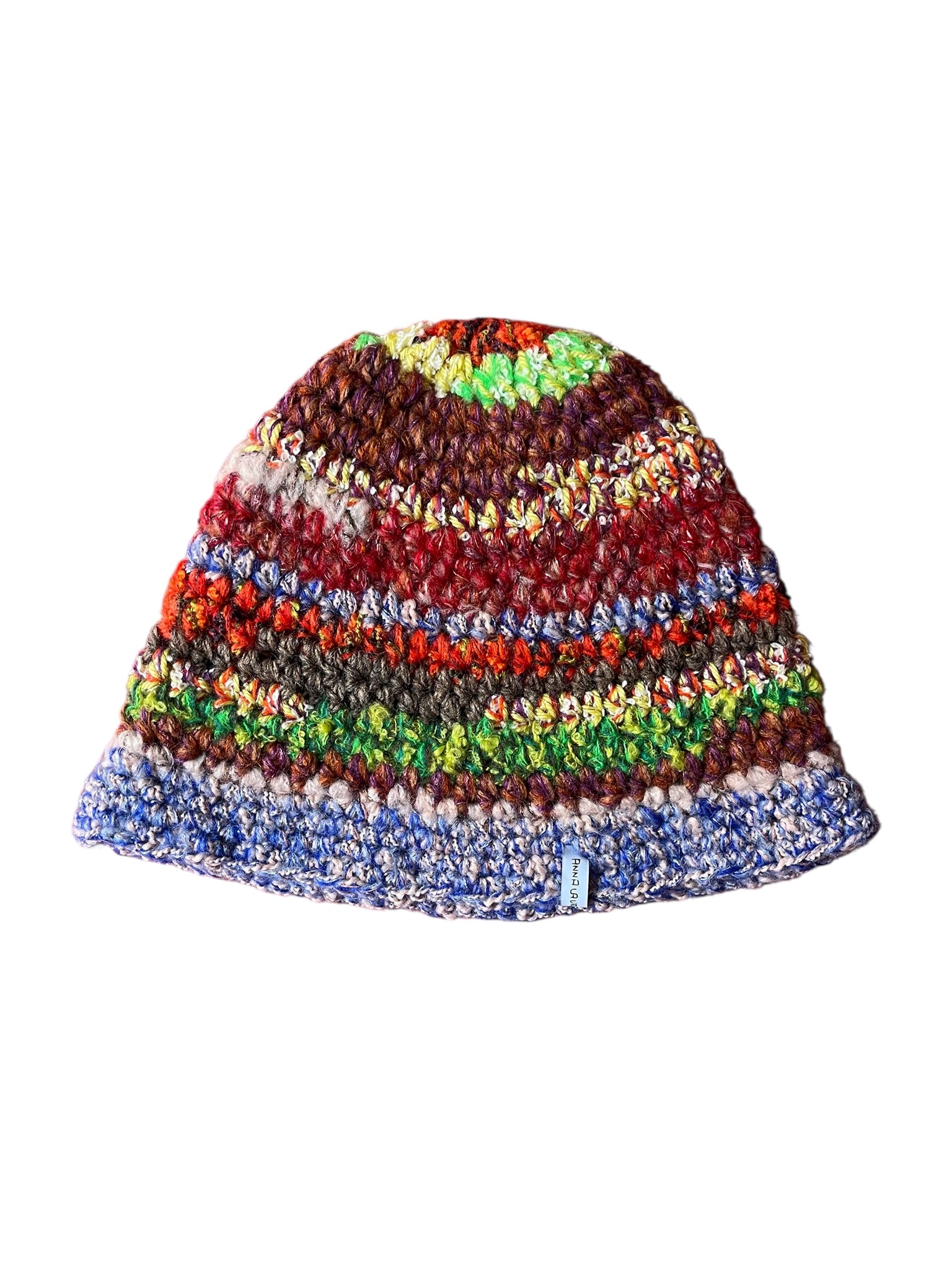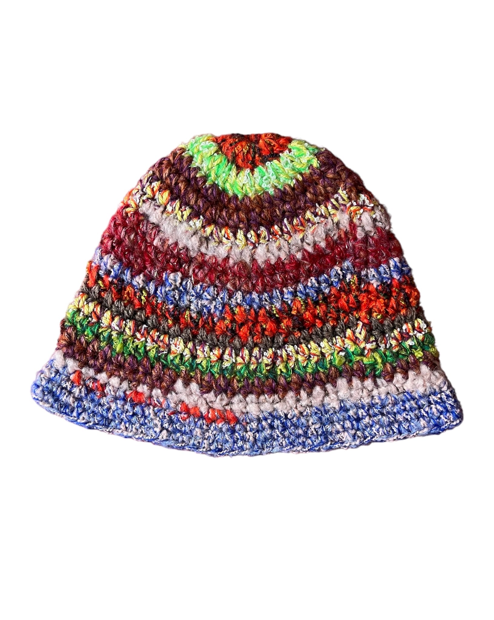 Berretto multicolor in lane miste fatto a mano a uncinetto.