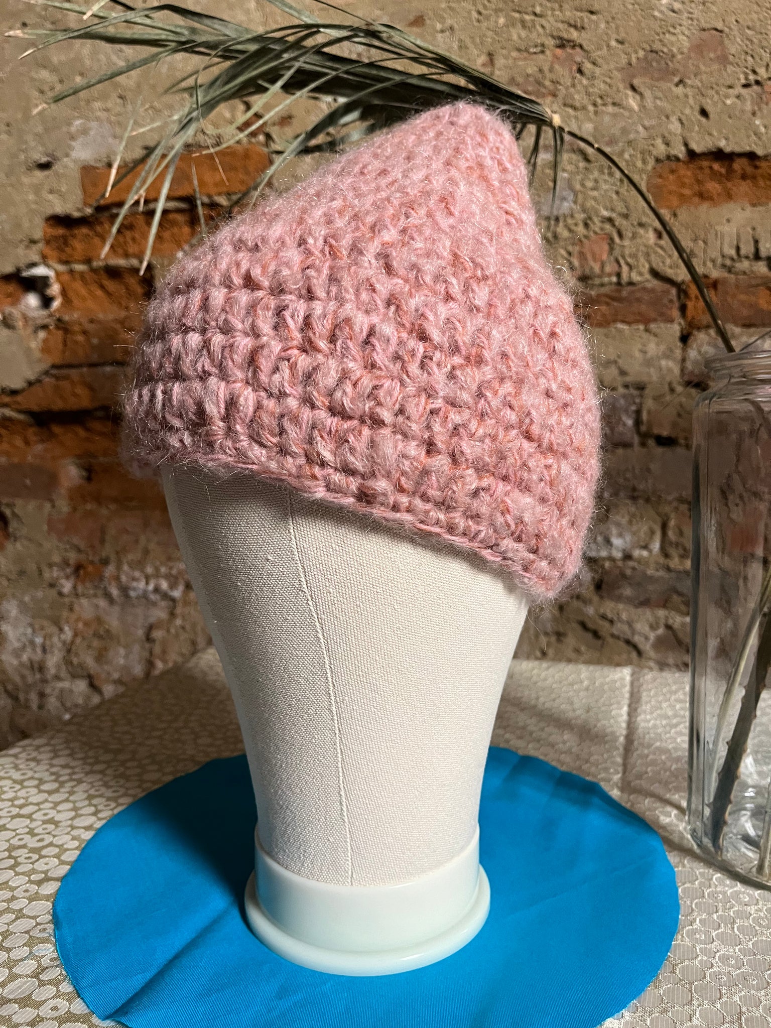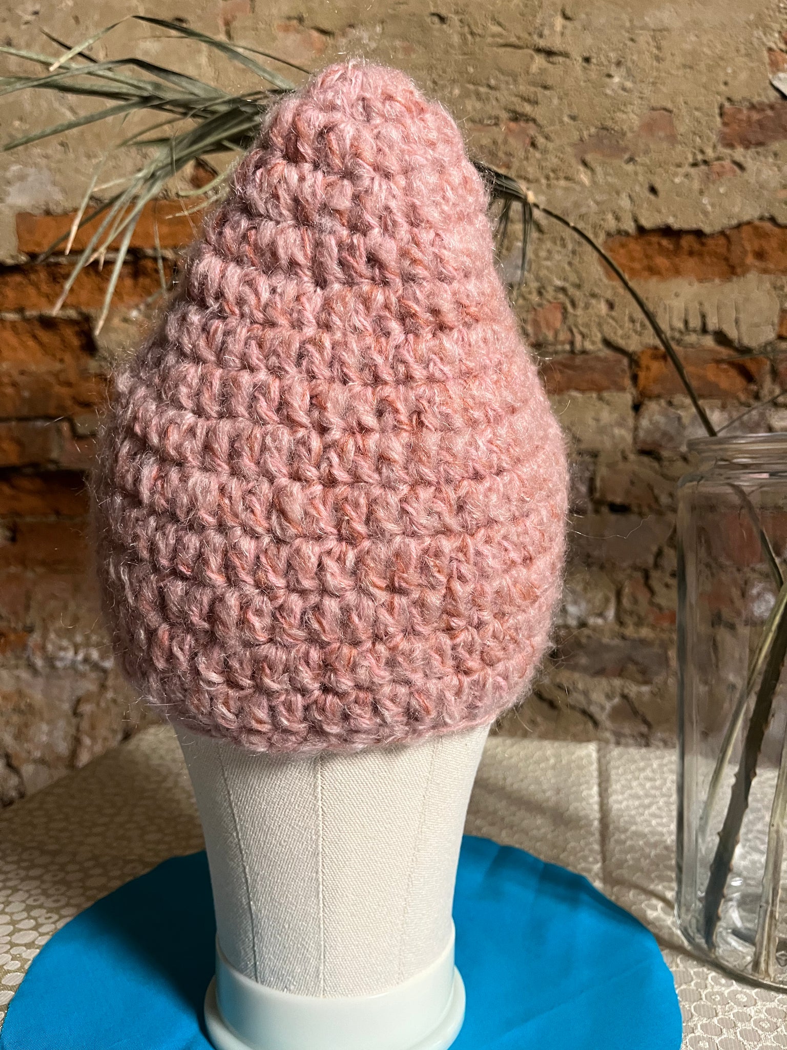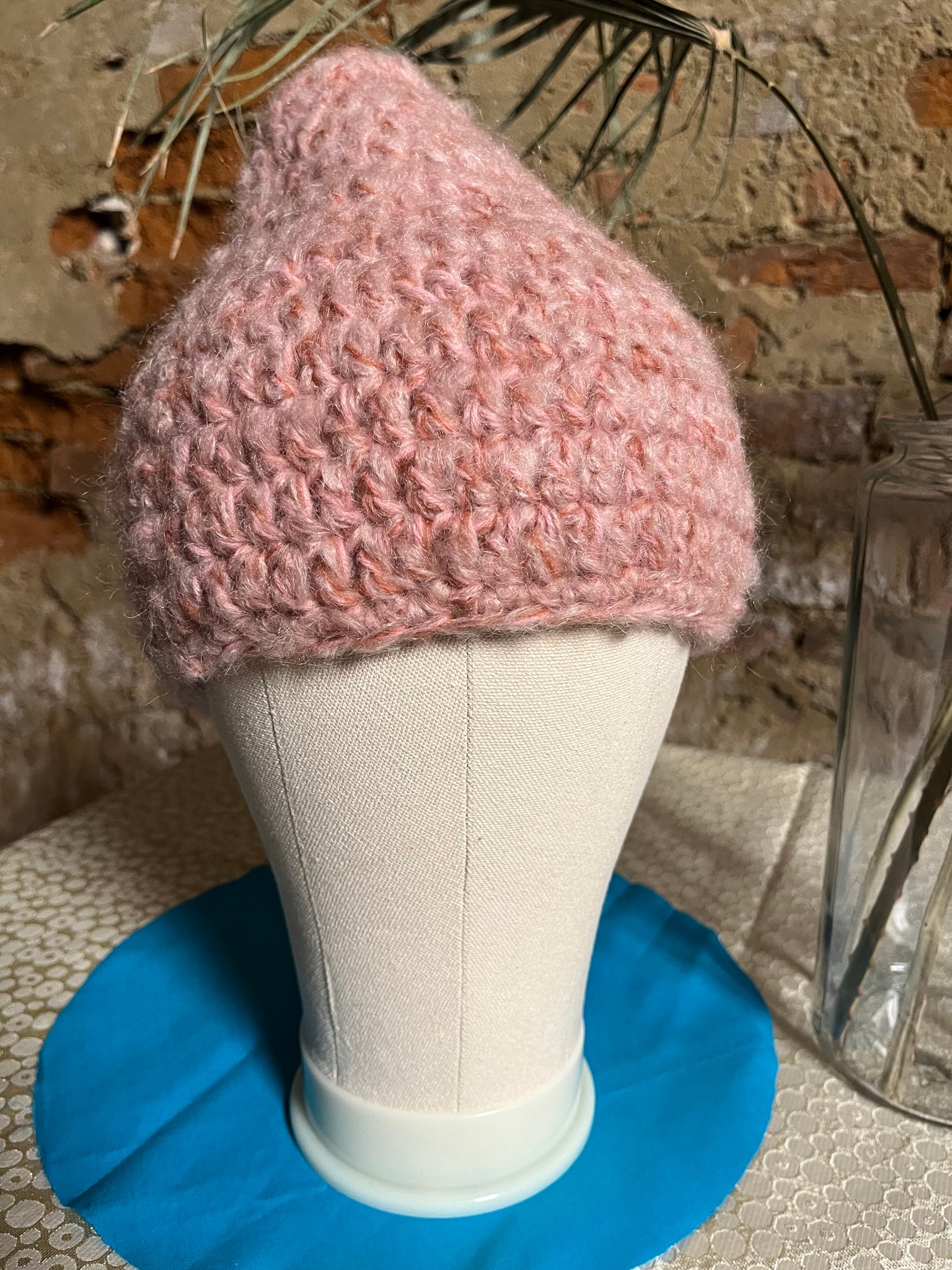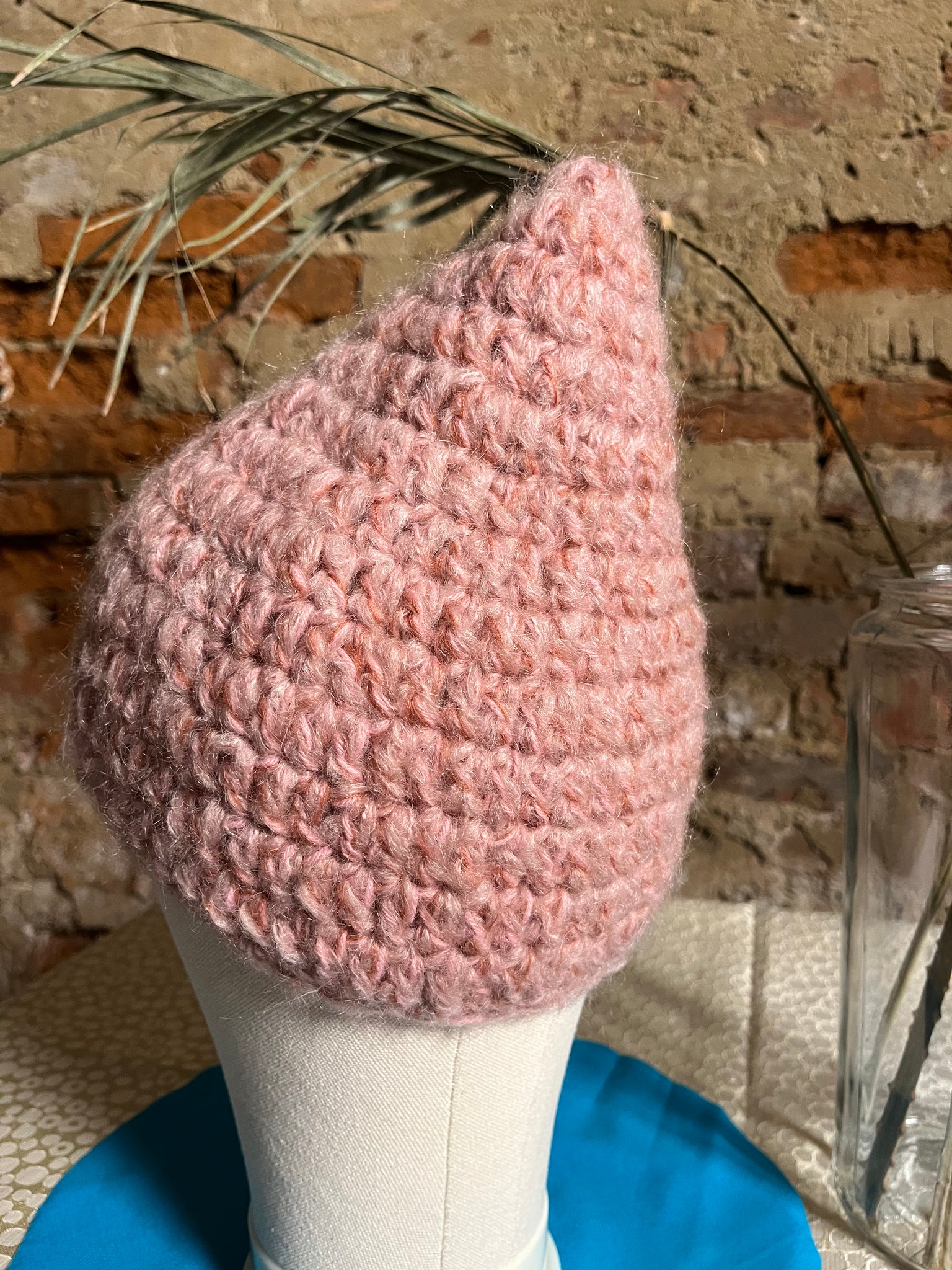 Berretto fatto a mano a uncinetto in lana mista bouclé grigio scuro e verde bottiglia.