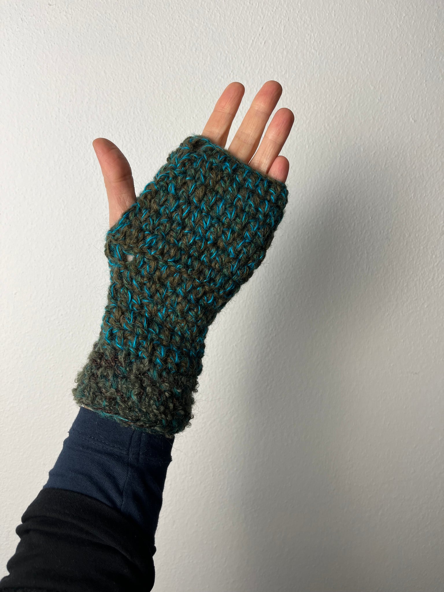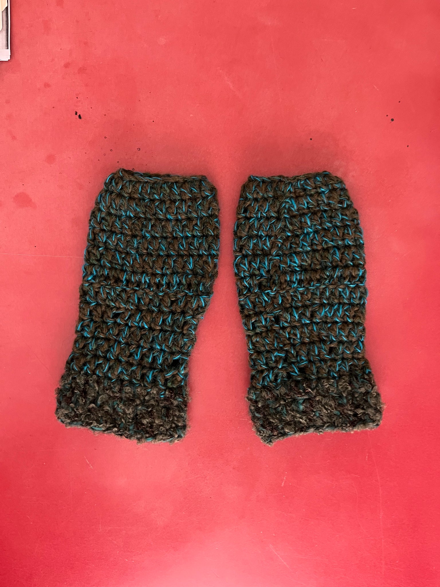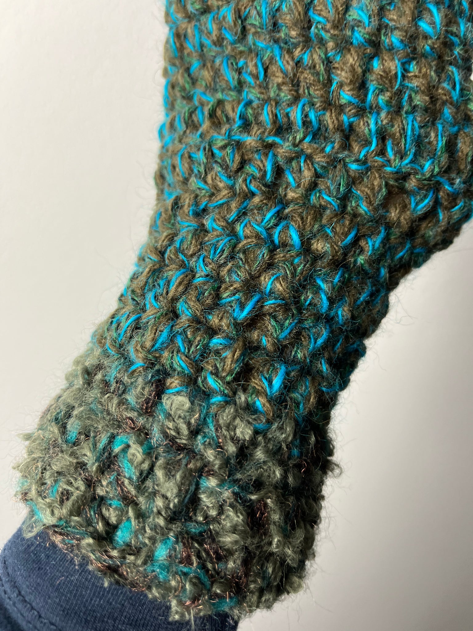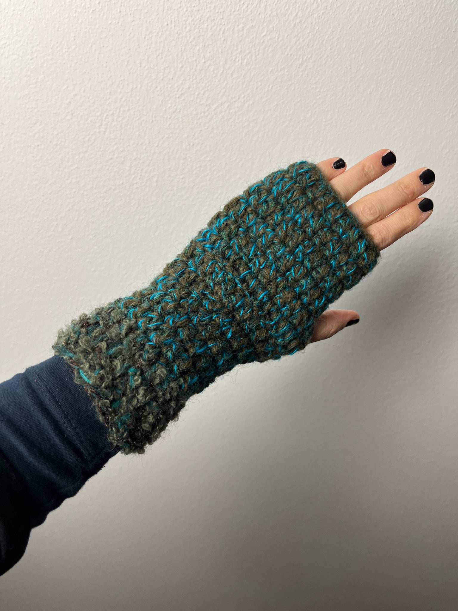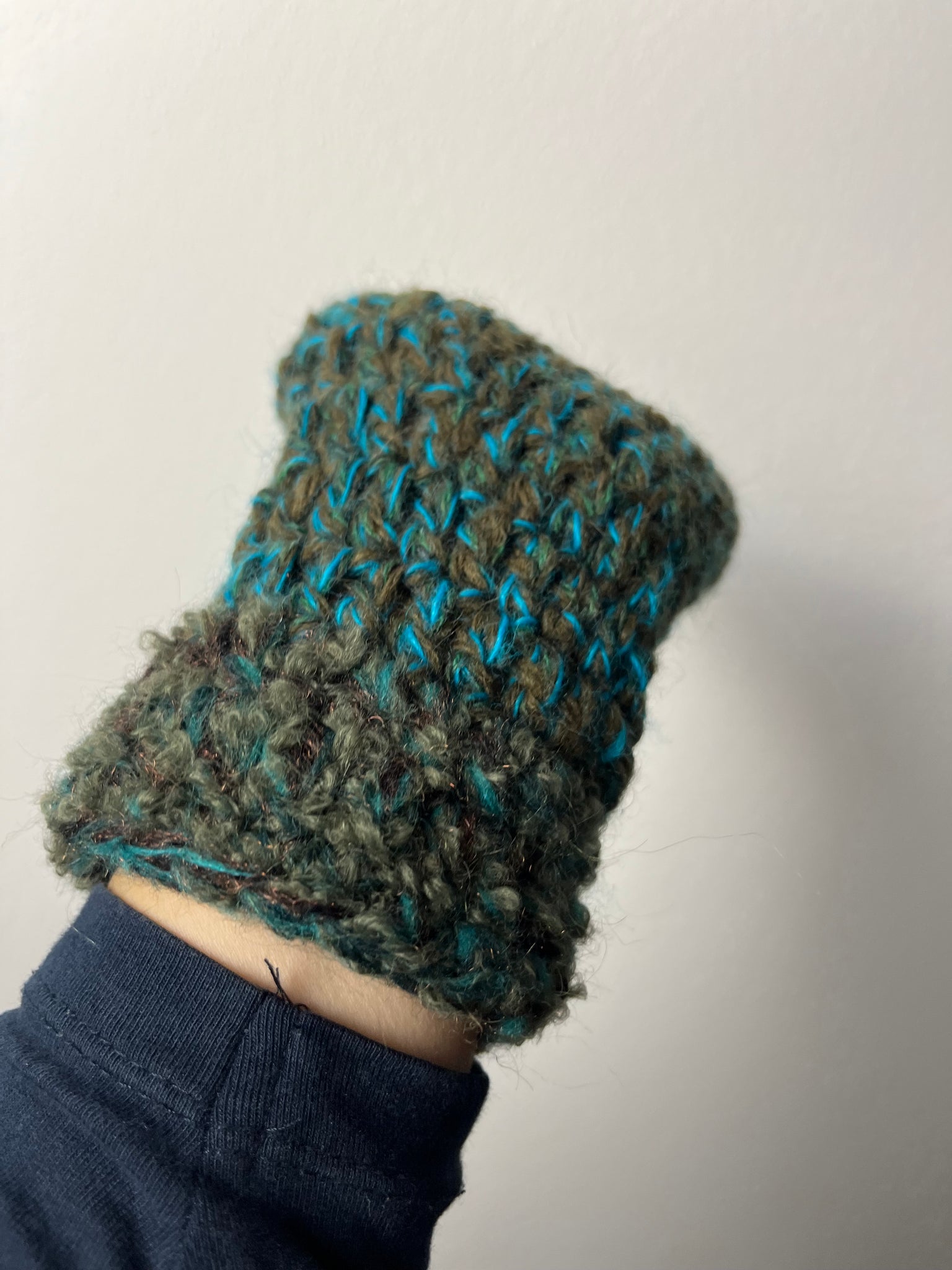 Manicotti in misto lana fatti a mano a uncinetto.