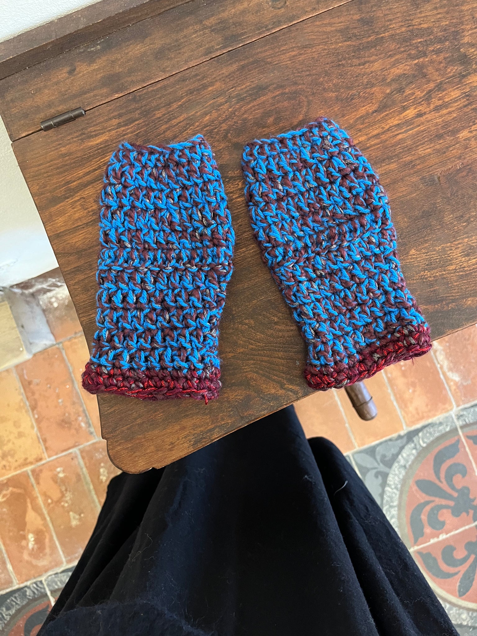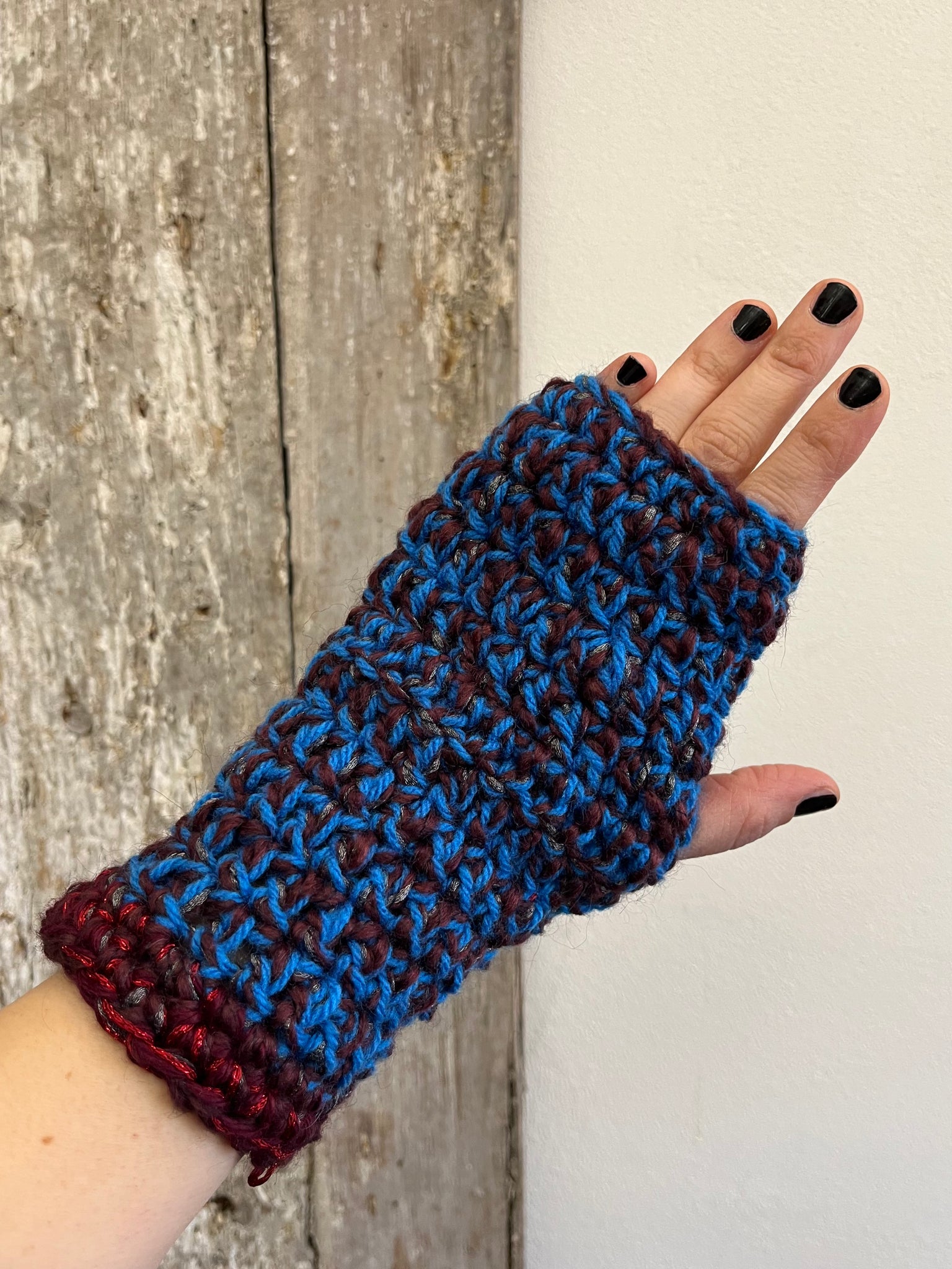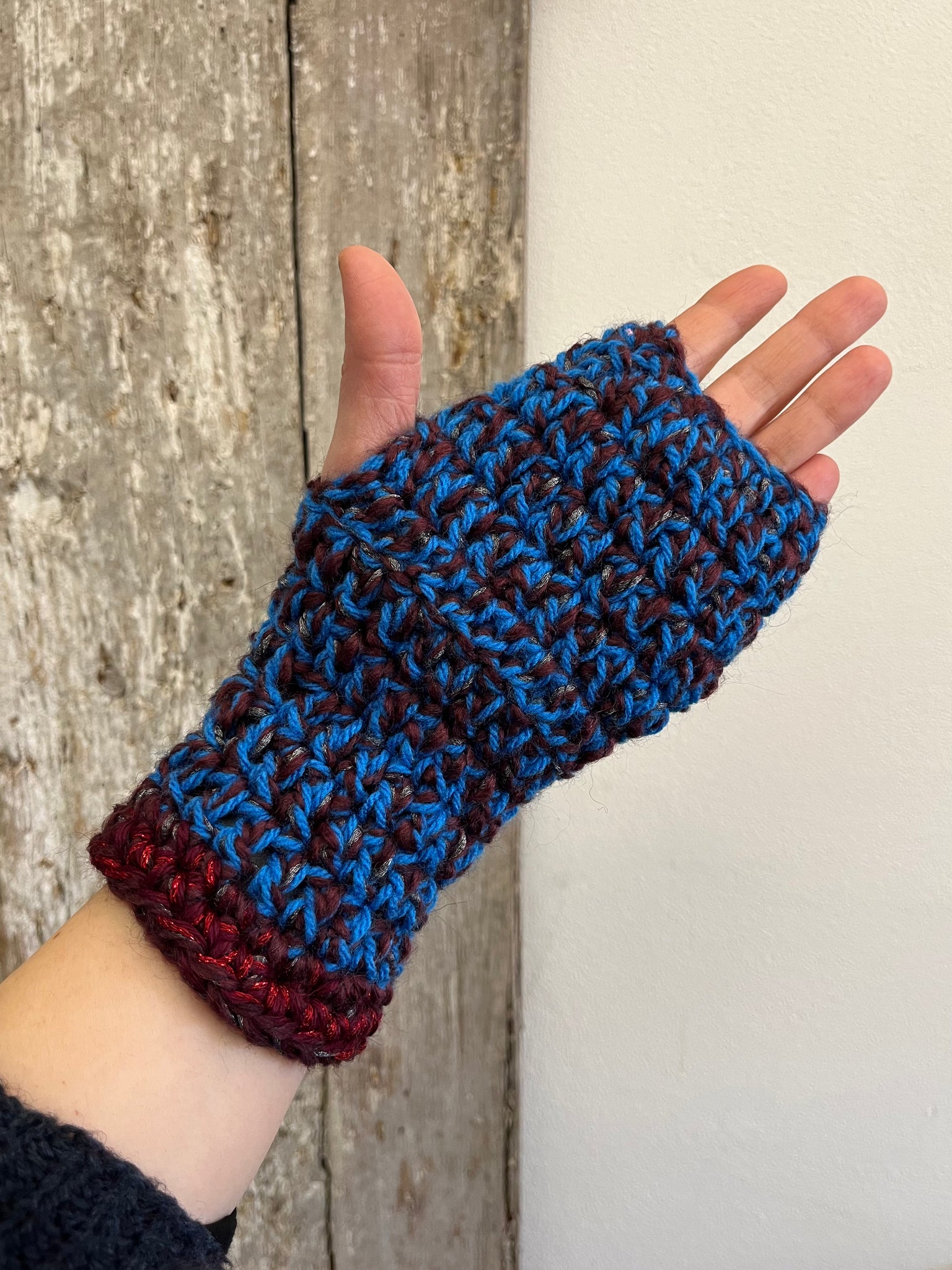 Manicotti in misto lana fatti a mano a uncinetto.