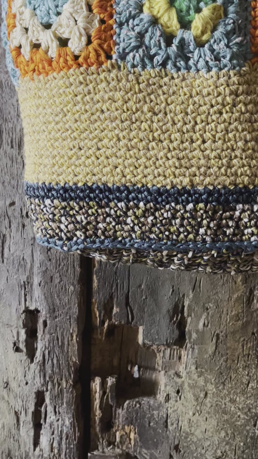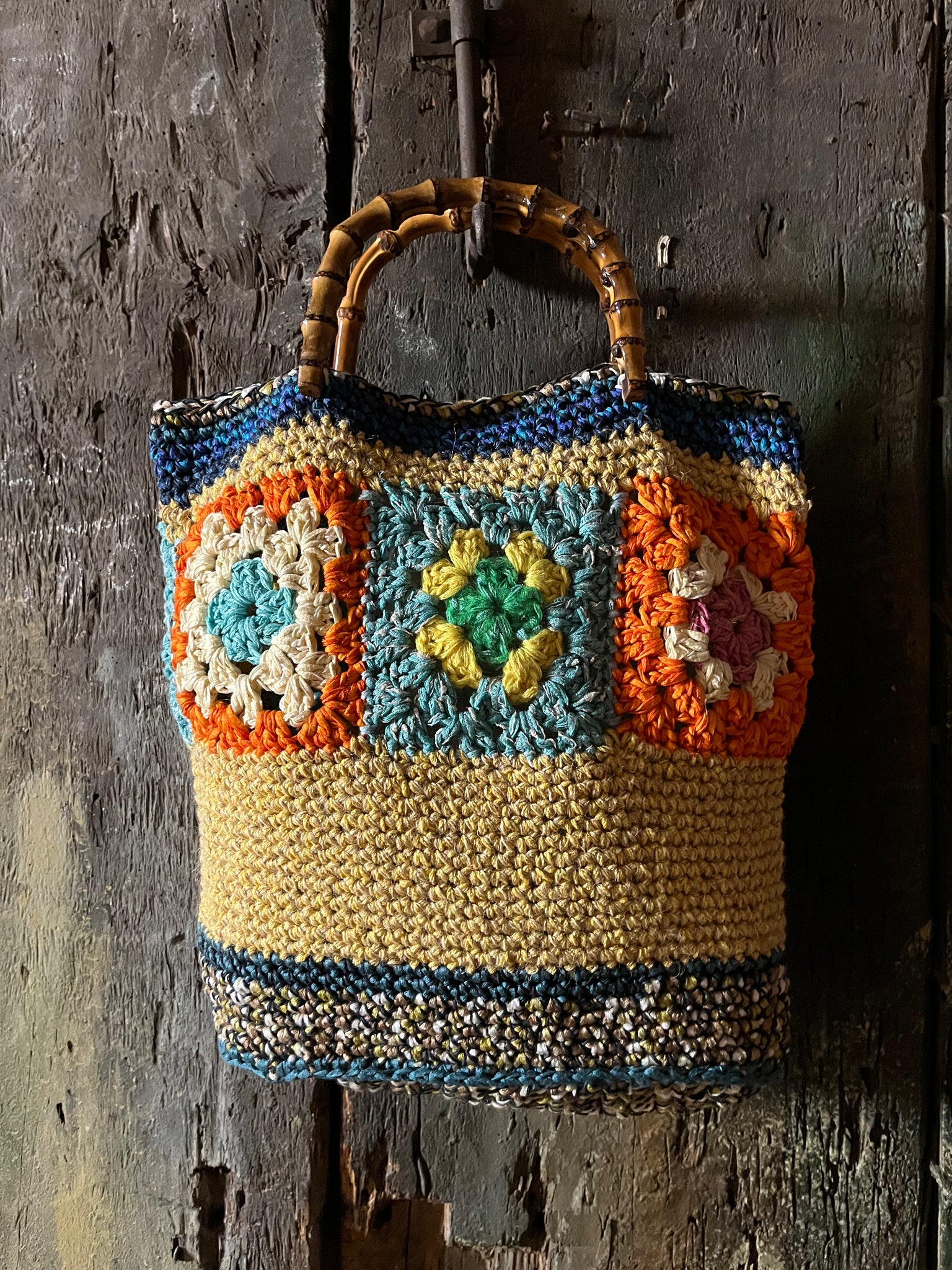 Borsa stopper fatta a mano a uncinetto in cotone e cordino. Manici in bambù.