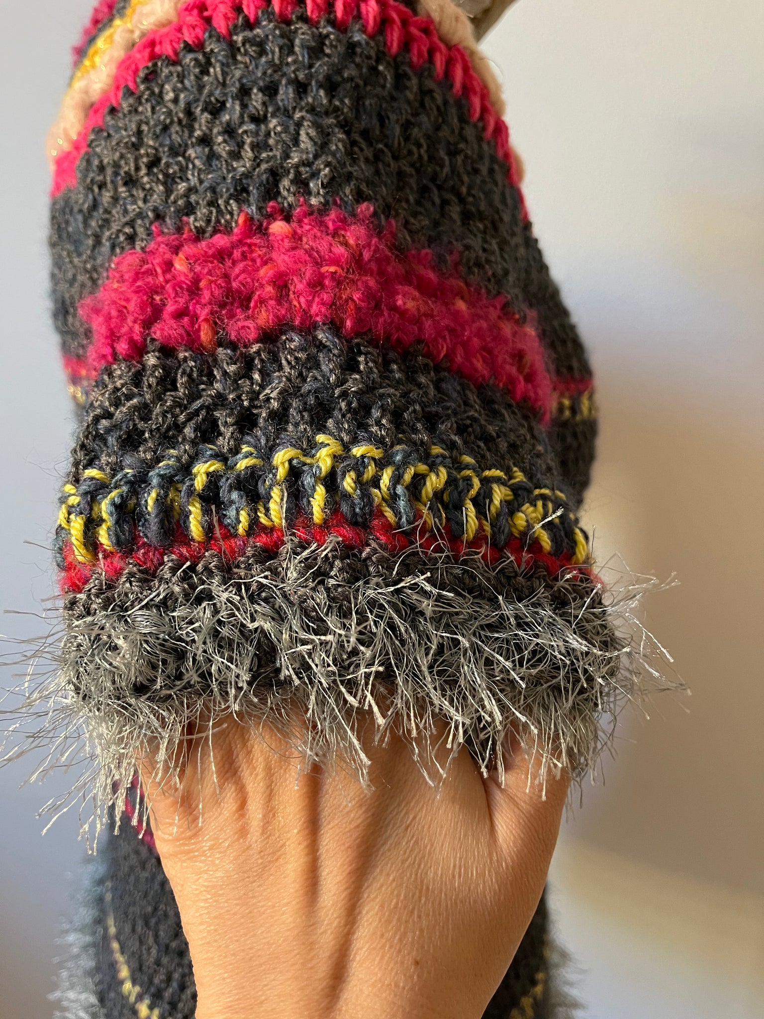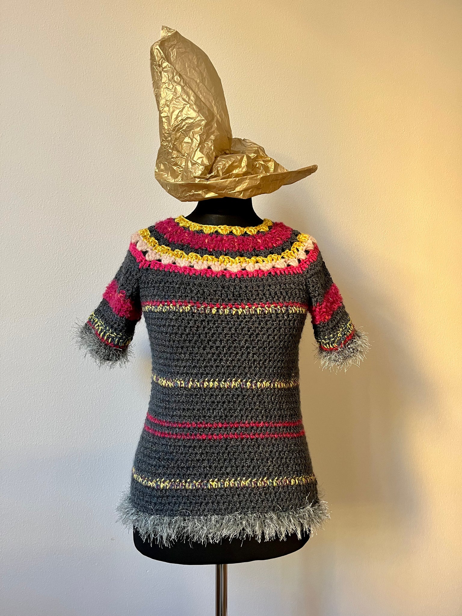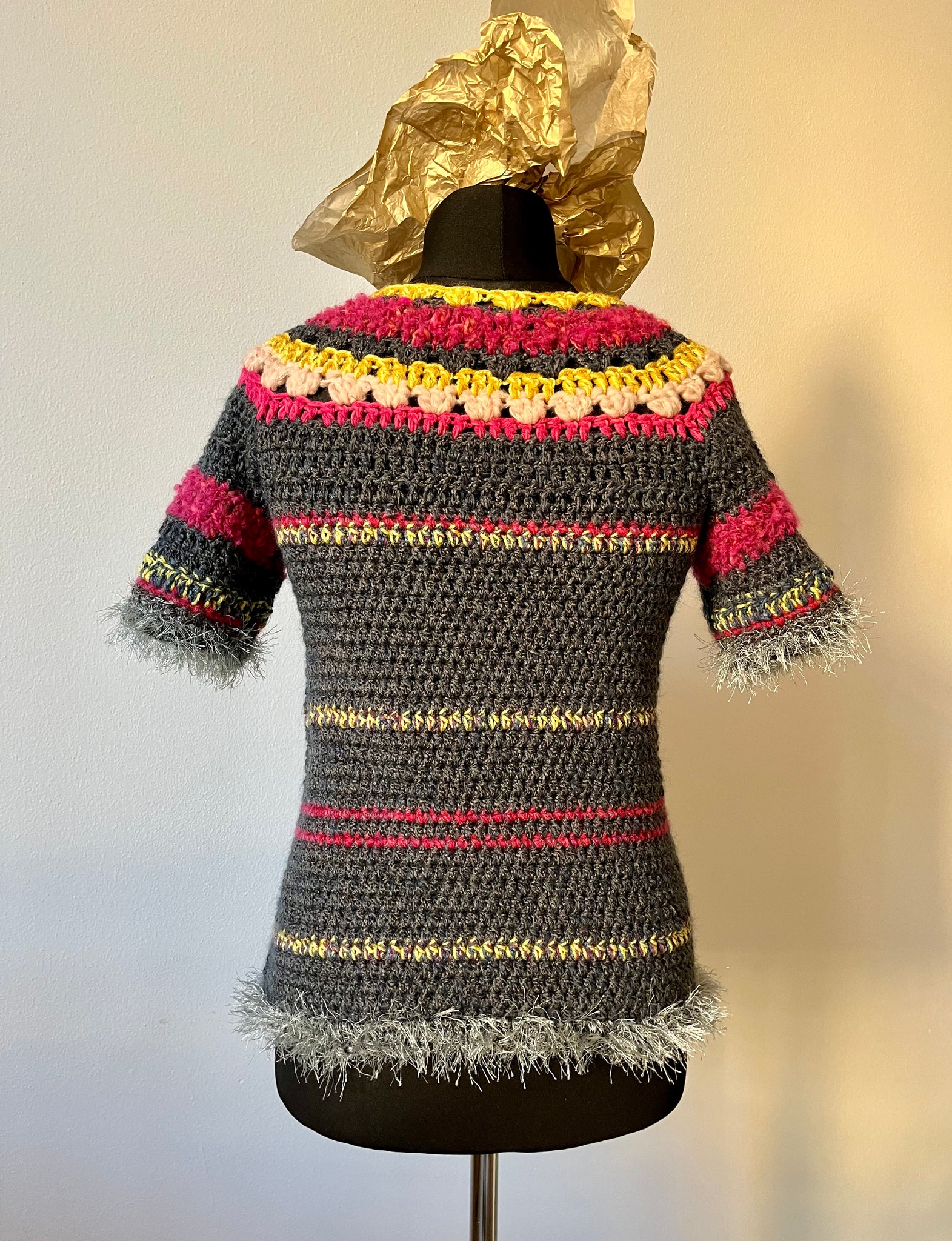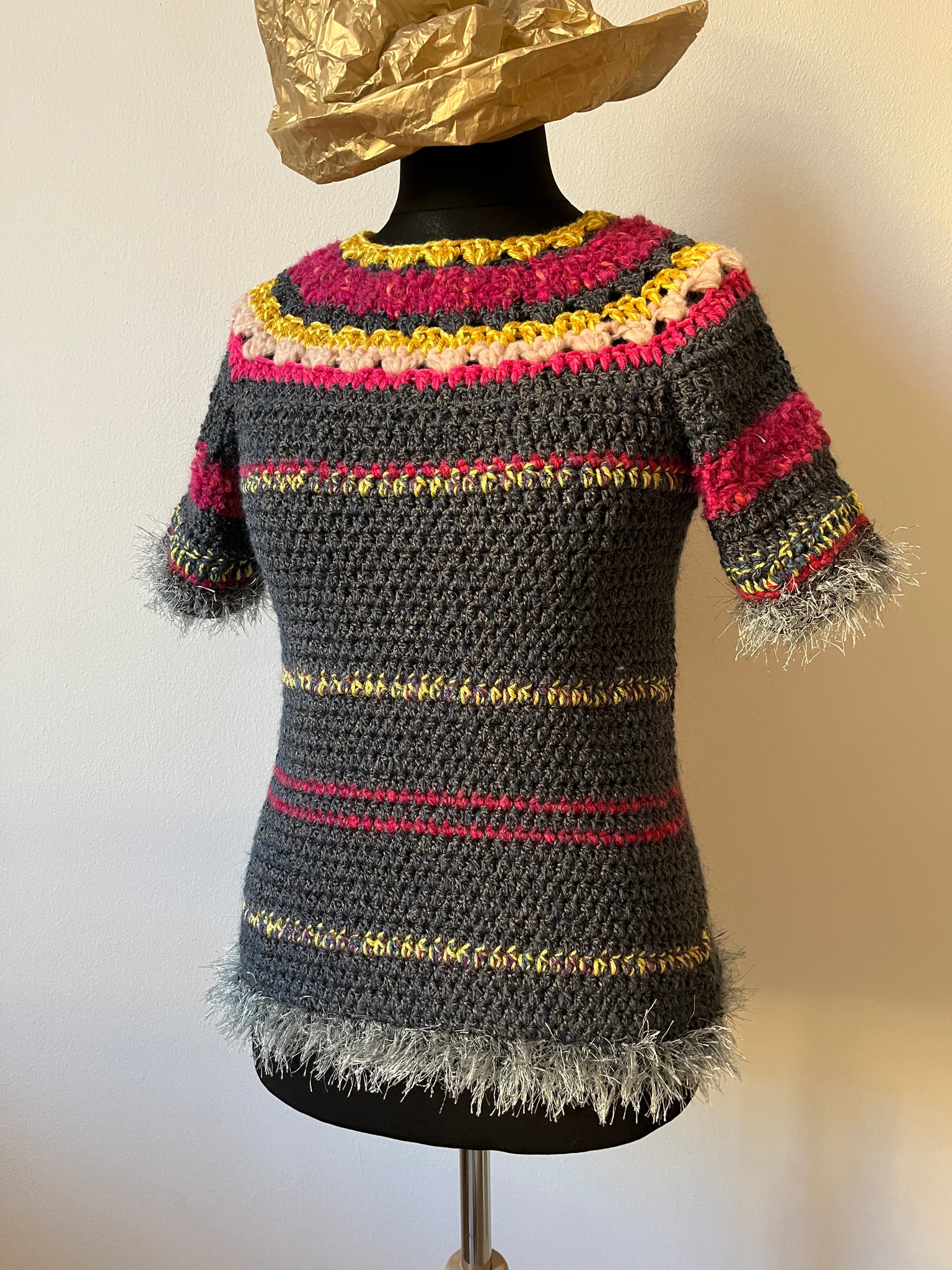 Top in lana fatto a mano a uncinetto. Manica mezza e scollo tondo.