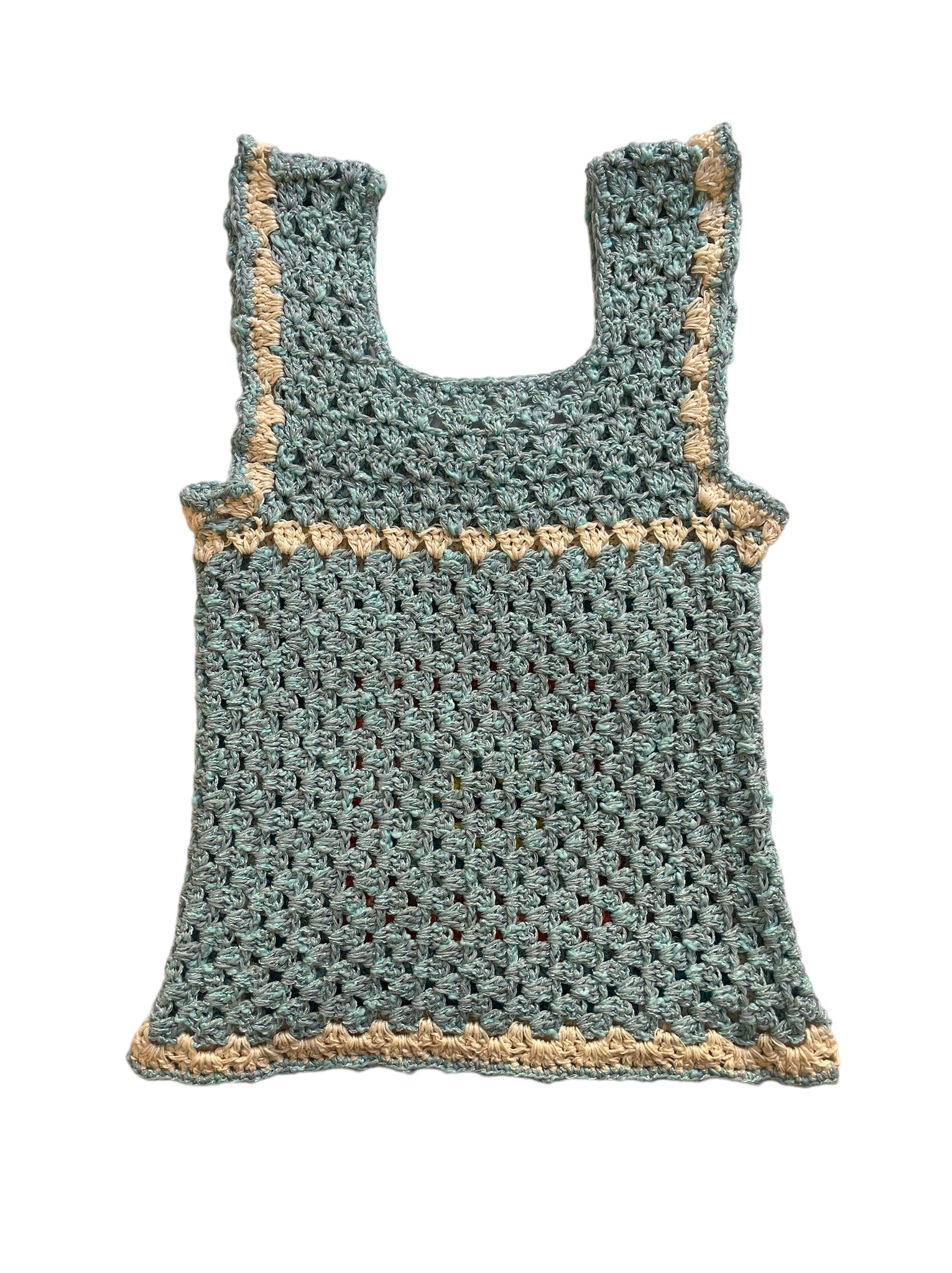 Top fatto a mano a uncinetto in cotone di colori diversi. Fronte e retro con lavorazioni diverse.